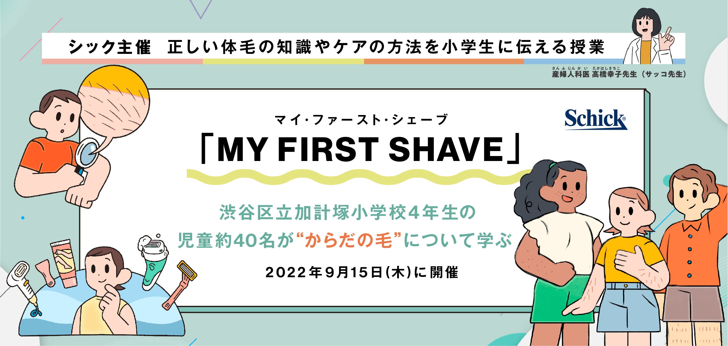 ウェットシェービング国内トップシェア※1を誇るシック・ジャパン株式会社(本社:東京都品川区、代表取締役社長:後藤 秀夫、以下シック)は、産婦人科医の高橋幸子先生(以下、高橋先生)を講師に迎え、“自分らしさ”や“体毛の多様性”とは何かを考えながら、正しい体毛の知識やケア方法を小学生に伝える出張授業「MY FIRST SHAVE(マイ・ファースト・シェーブ)」を2022年9月15日(木)、渋谷区立加計塚小学校の4年生児童・保護者を対象に開催しました。