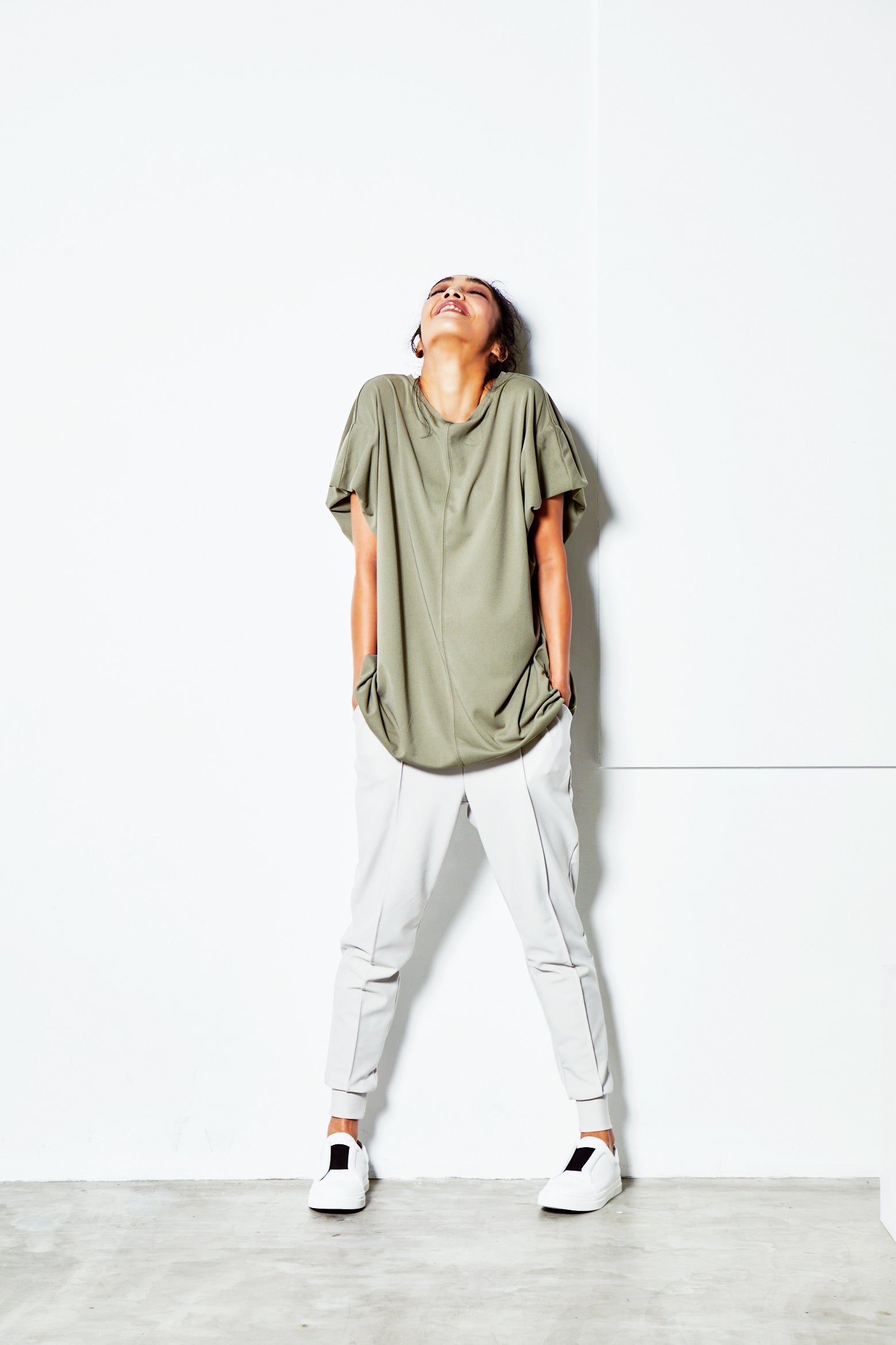 ルームウェアやワンマイルウェアの垣根を越えて、どのシーンでも着られるシーンレスウェア。