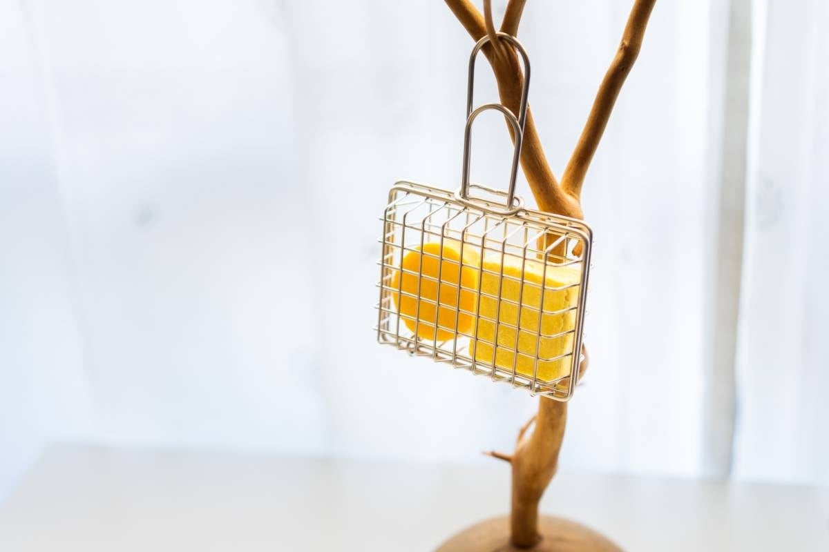 水分に溶けやすいので、速乾性に優れたステンレス製メッシュケースに入れて吊るしておくと乾燥しやすく衛生的にご使用頂けます。移動が簡単で場所をとらず、直置きしないのでお掃除がとても楽になります。