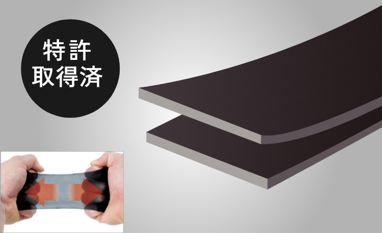 収縮率の異なる二重のベルトを採用することで、強力かつ柔軟なサポート性能を実現。背中の中央から腰骨を通り、腹部まで均一に圧をかけて体感を安定させる内蔵ベルト構造は特許取得済みの独自のサポート方法です。