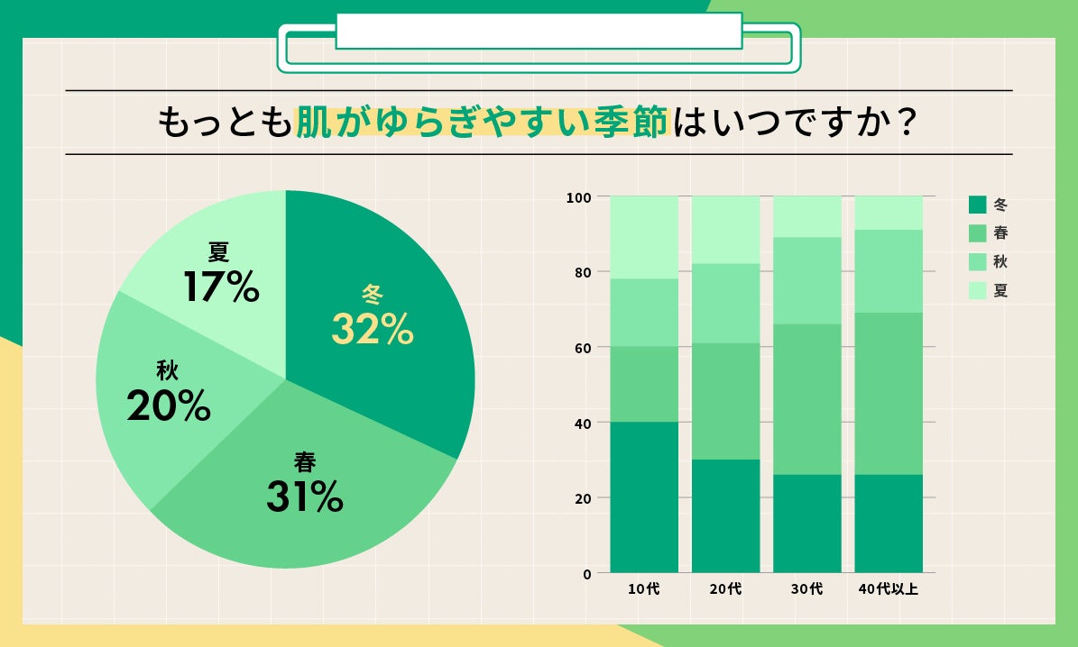 次に「もっとも肌がゆらぎやすい季節は?」という質問に対しては、