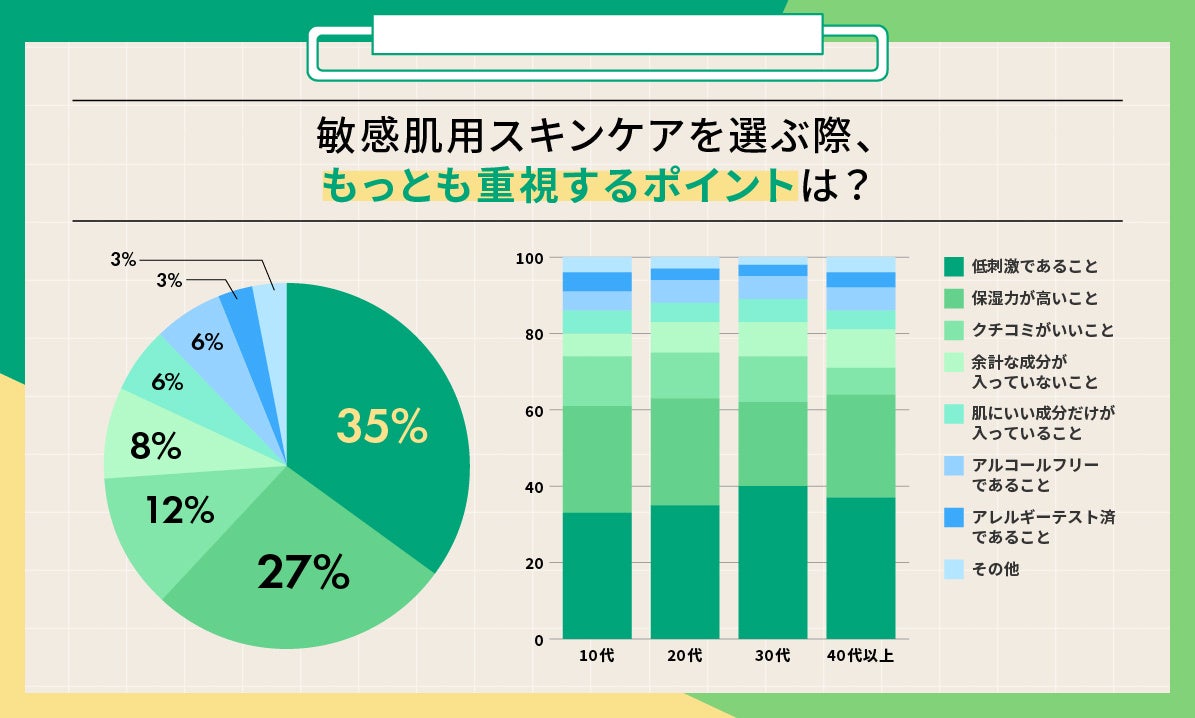 「敏感肌用スキンケアを選ぶ際にもっとも重視するポイントは?」という質問に対して