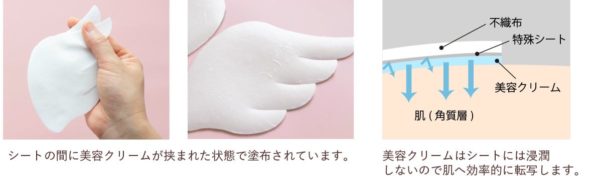 シートは不織布とクリームの間に特殊なシートを挟み込んだ2層構造。放出した液を再吸収してしまうことはありません。