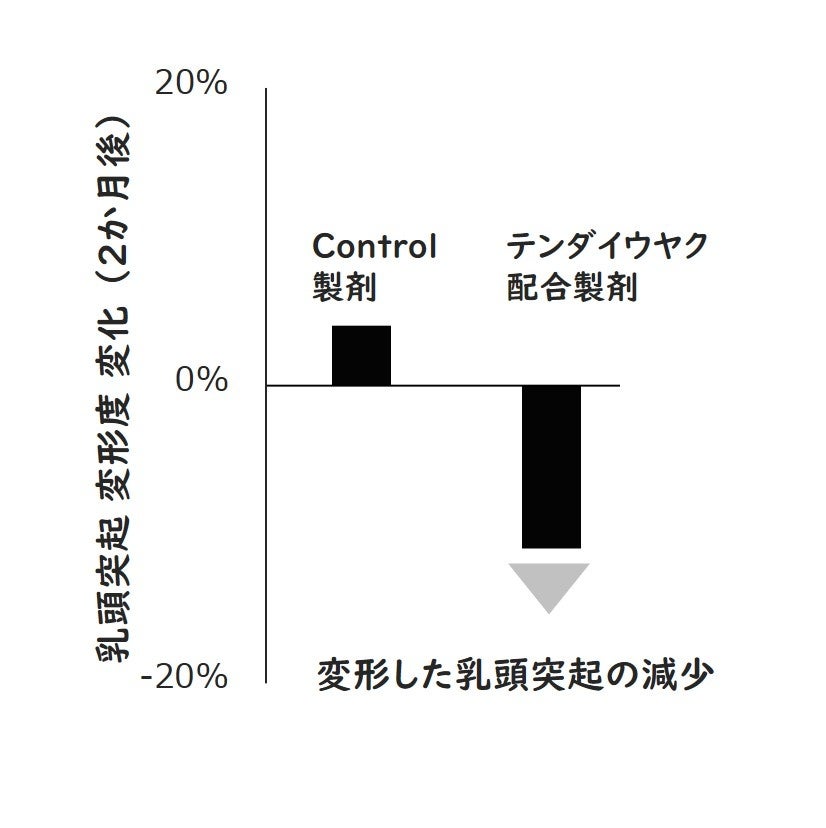 乳頭突起の研究を進める中で、乳頭突起下部の真皮成分だけでなく、乳頭突起上部の表皮に存在する基底膜成分であるパールカンの関与があるのではないかと考え、「天台烏薬」に注目。その葉から抽出した成分に、乳頭突起が歪な形状に変化することを抑える効果があることがわかったため、2021年に特許出願しています。