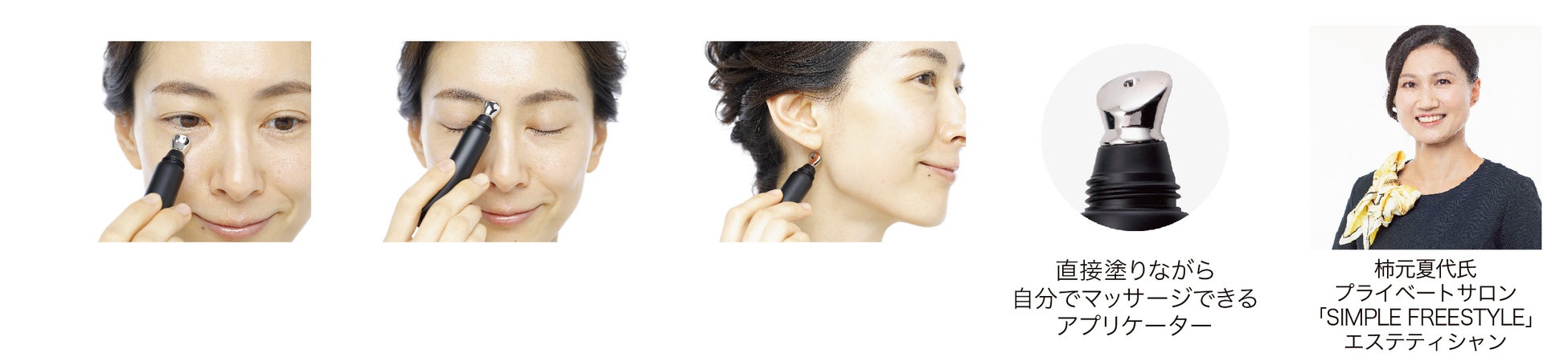 エステティシャン・柿元 夏代氏監修の元、効果的な塗り方と、独自の目元マッサージメソッドを開発。製品とと もにWEB動画などでご案内し、さらなる高実感に繋げられるようサポートしてまいります。