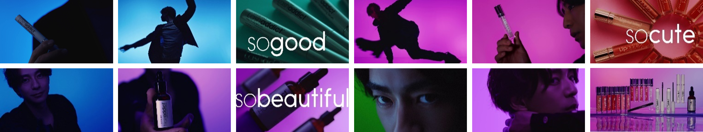 色鮮やかな光が刻々と変化する幻想的な空間でsoaddictedの世界観「so good so cute so beautiful」を表現する三浦さんに思わず虜になってしまうようなCMです。