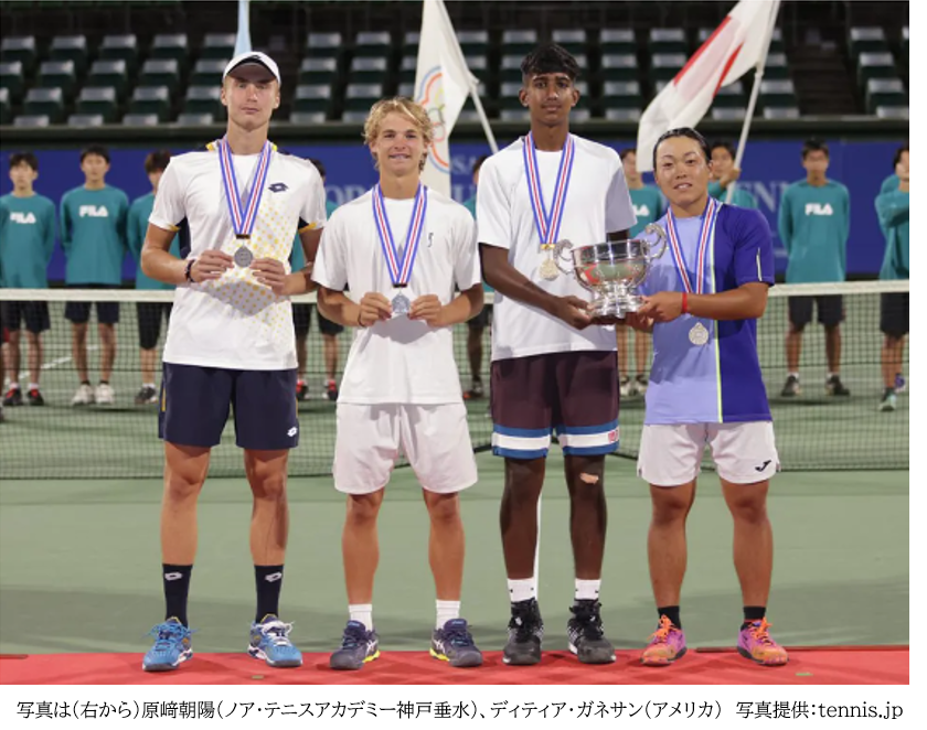 2022年10月10日(月)~16日(日)に開催された大阪市長杯世界スーパージュニアテニス選手権大会において、原﨑朝陽(ノア・テニスアカデミー神戸垂水)/A・ガネサン(アメリカ)組がダブルスで優勝を果たしました。