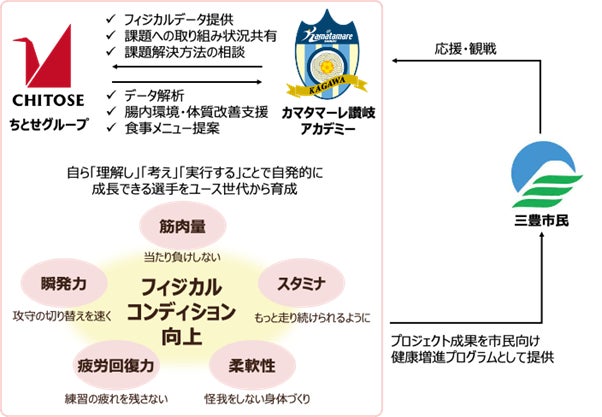 カマタマーレ讃岐とバイオベンチャー企業群 “ちとせグループ” は、カマタマーレ讃岐のアカデミーU-18選手を対象に、腸内環境起点の総合的なフィジカルコンディションの向上による選手の育成を目的とした共同プロジェクトを開始したことをお知らせいたします。