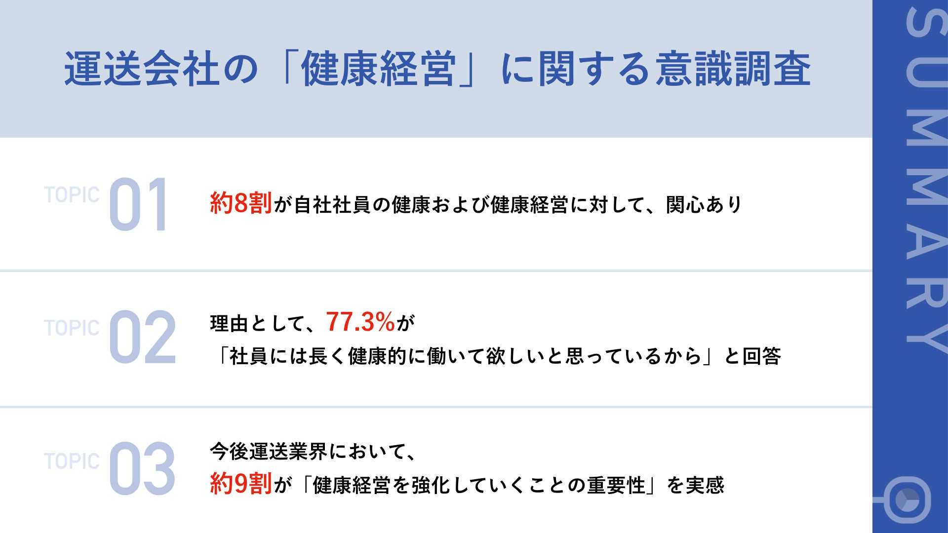 今回は、運送業の経営者109名を対象に、運送会社の「健康経営」に関する意識調査を行いました。