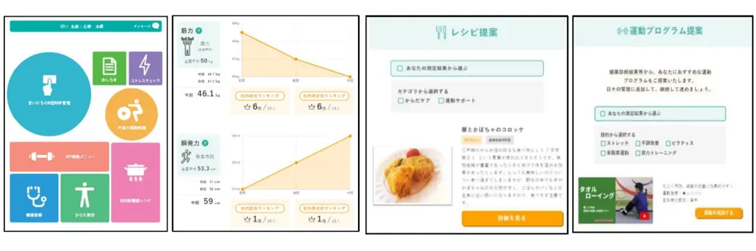・自社開発の健康管理WEBサイト「KEN幸(ケンコウ)」を活用し、健康診断結果や体力測定結果に合わせた個別の運動動画を配信している。・配信した動画の中から自分が取り組む運動をピックアップし、毎日運動に取り組んだ結果をシステムに入力することで日々の運動を推進している。