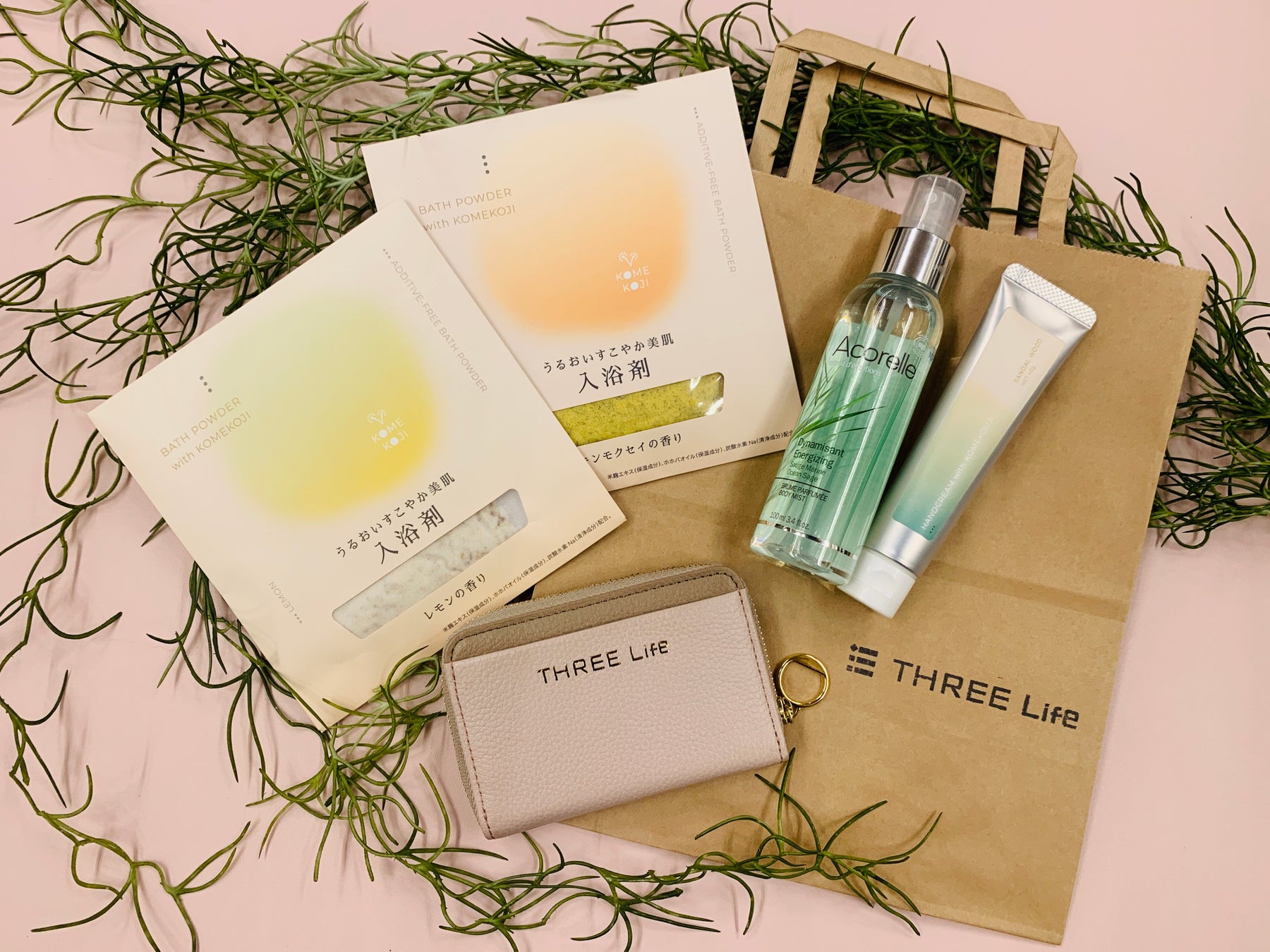 米麹エキスや椿油を配合し自然原料にこだわった無添加※1の『米麹のハンドクリーム』や、100%オーガニックのアルコールを使用した優しい香りの「Acorelle(アコレル) 」のボディスプレーなどが入り、価格は5,000円(8,000円相当)です。