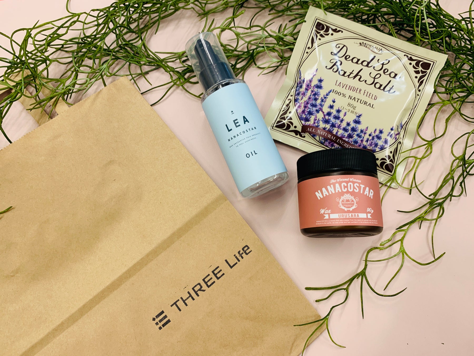 美容師がお客様の声をもとにつくったプライベートブランドの「NANACOSTAR(ナナコスター) 」のワックスやヘアオイルや、香料・着色料・防腐剤など一切無添加でどんなお肌にもやさしく多種のミネラルを含む「ミネラリア」の天然の死海バスソルトなどが入り、価格は3,000円(4,500円相当)です。