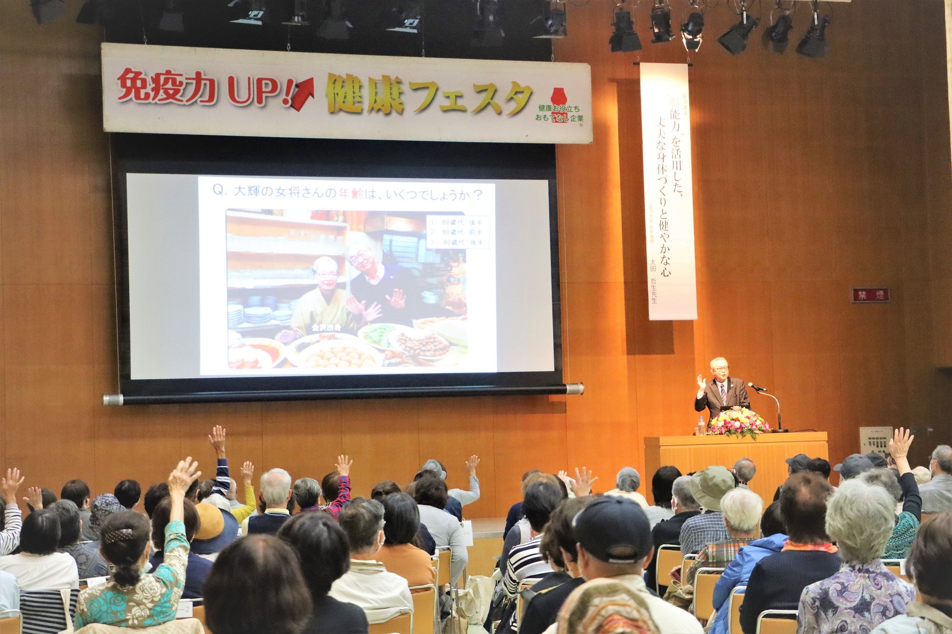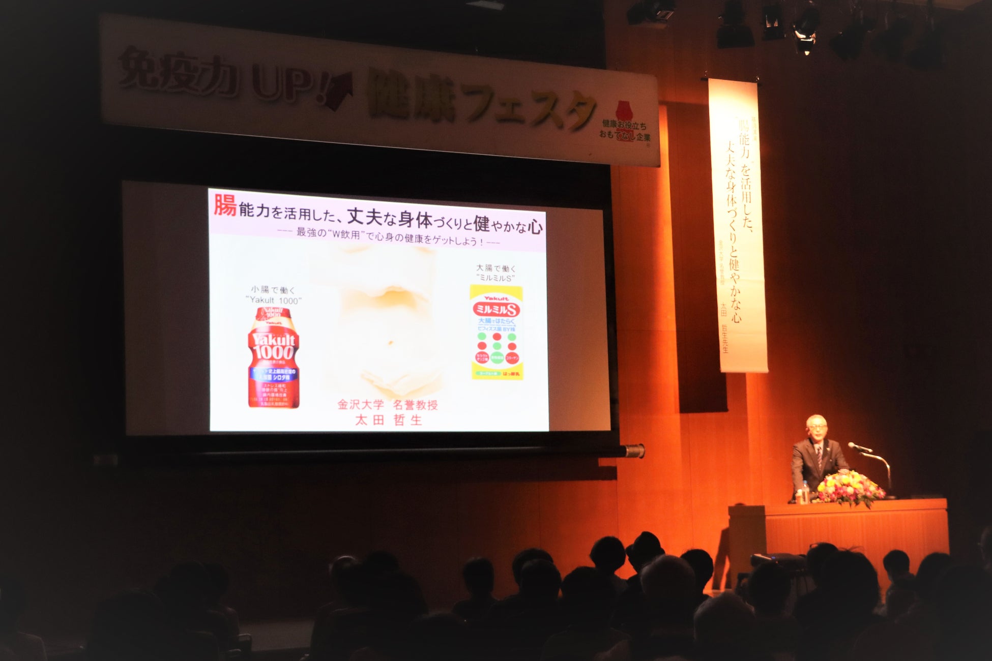 兵庫ヤクルト販売株式会社は、日頃ヤクルトをご愛飲いただく地域のお客さま向け感謝イベントとして、10月18日に加古川市民会館、19日にシーサイドホテル舞子ビラ神戸 あじさいホールの2会場で、「免疫力UP!健康フェスタ」を開催しました。イベントでは、金沢大学名誉教授 太田 哲生先生に「腸能力を活用した丈夫な身体づくりと健やかな心」をテーマにご講演いただきました。また、オペラ歌手で噺家でもある橋本 恵史氏による笑いあり涙ありの歌唱ステージ、「免疫力UP!ミニコンサート」を行いました。コンサートでは、65周年特別企画としてお客さまから募集した「私とヤクルト」のエッセイの優秀作品を朗読し、作品にちなんだ曲を披露いただきました。