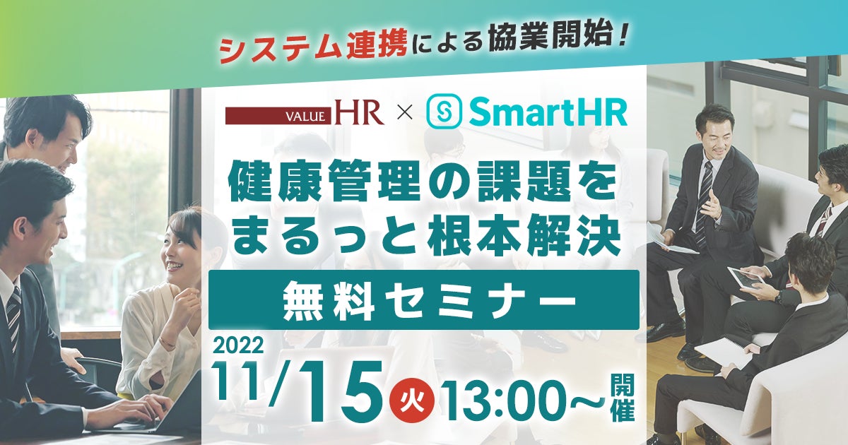 「健康管理のインフラ」を目指す企業として、健康管理サービスを提供するバリューHRが、2022年11月15日(火)にオンライン形式での無料セミナーを開催します。