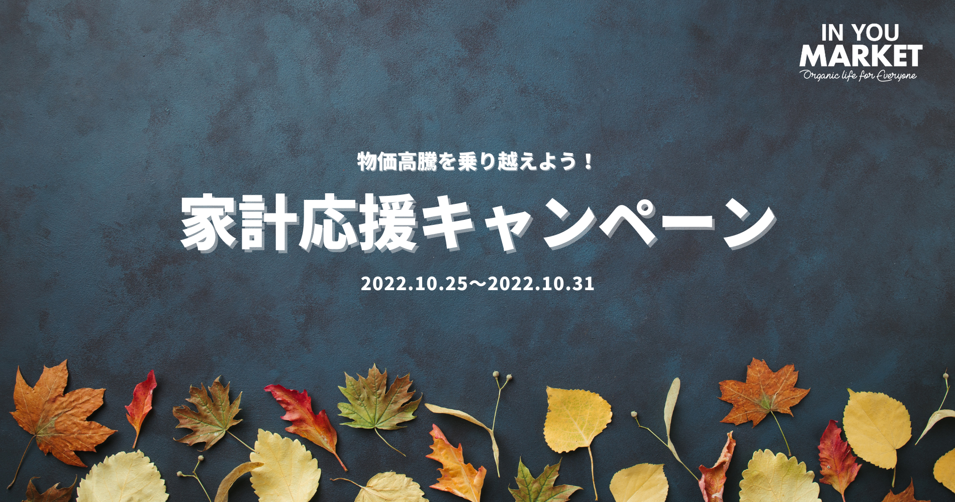 株式会社インユー(本社:東京都渋谷区/代表取締役社長:松浦 愛)は、同社が運営する”全ての人にオーガニックな暮らしを。”をコンセプトに国内で最も厳しく安心できる基準を目指すオーガニックマーケットプレイス「IN YOU MARKET(インユーマーケット )」にて、物価高騰の中でもお得にオーガニック商品を購入できる家計応援キャンペーンを期間限定で実施いたします。