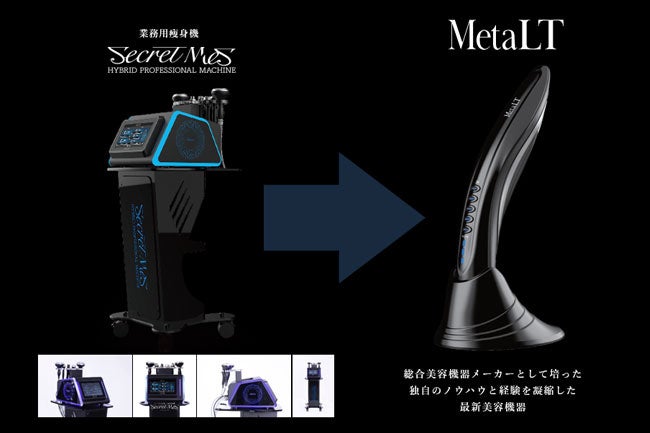 業務用フェイシャル&ボディ痩身美顔器「SecretMes※」のノウハウを活かすことはもちろん、総合美容機器メーカーとして培ってきた技術力をこのMetaLT(メタエルティ)へ凝縮しました。