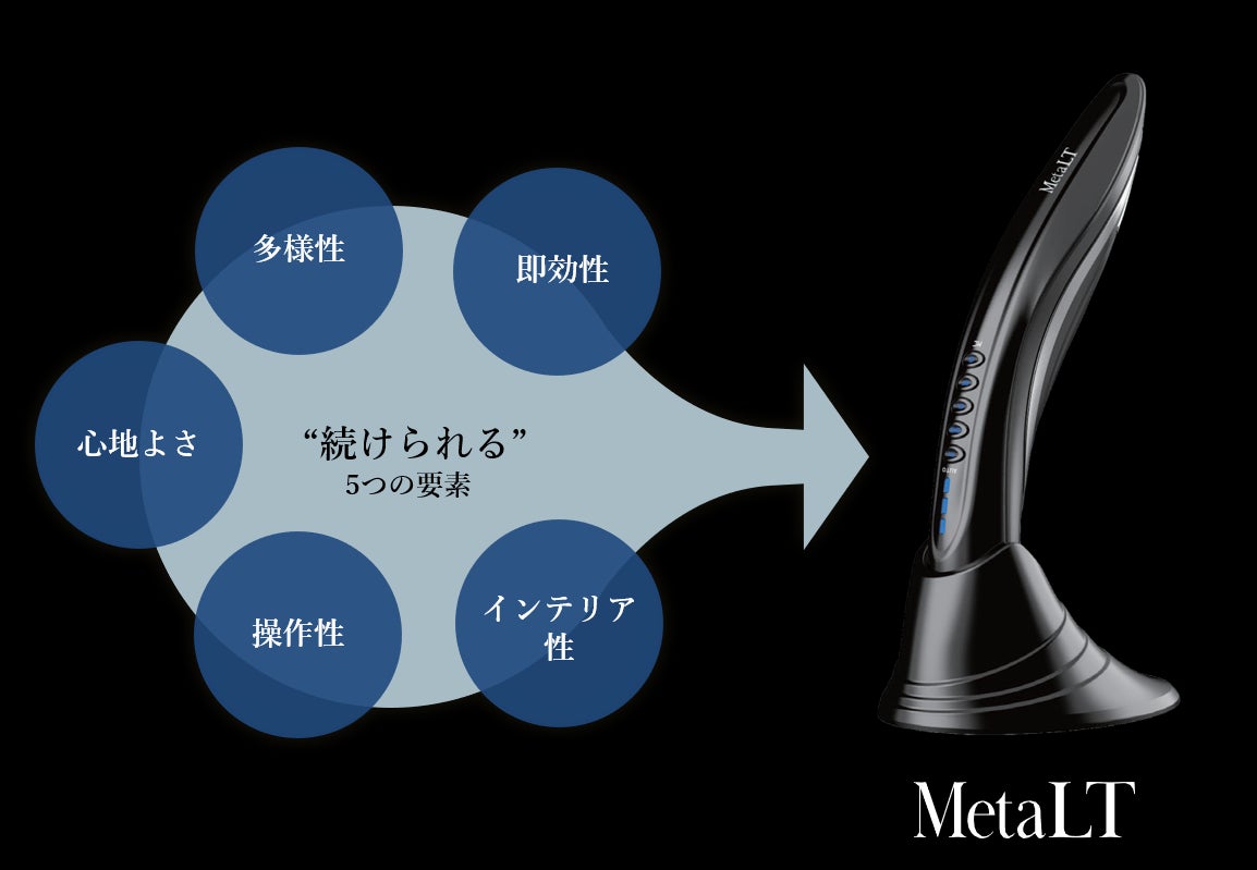 MetaLTではさまざまなリサーチを通して、「即効性」「多様性」「心地よさ」「操作性」「インテリア性」の5つの要素へのアプローチを多角的に追求しました。
