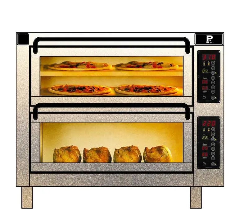 最新型窯オーブンP-REVOは、旧型の世界最速窯の性能はそのままに、重量は1/4(当社比)、 排気を減らし、周辺の温度の上昇を抑え、「重い」、「熱い」、「面倒」というこれまでの ピッツァ窯の常識を覆す、窯でもオーブンでもない、万能窯オーブンとして誕生。ピッツァ、 ナン(焼成4枚60秒)、クロワッサン180秒、食パン(焼成1斤20分)、その他、様々なメニ ューに活用いただけます。