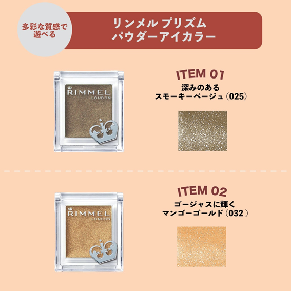①リンメル プリズム パウダーアイカラー 025 スモーキーベージュ