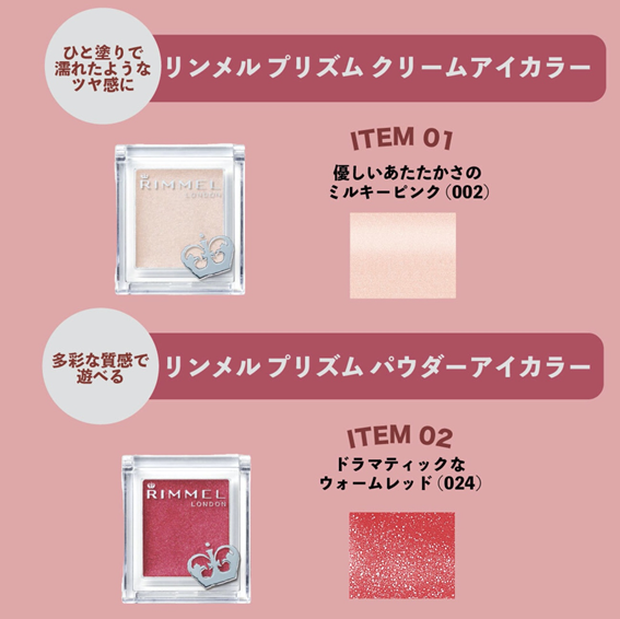 ① リンメル プリズム クリームアイカラー 002 ミルキーピンク