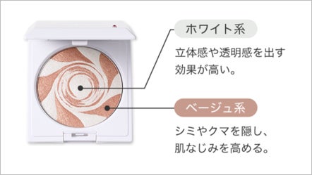 透明感を高める白と大人肌にフィットするベージュを混ぜ合わせたマーブルの色彩を採用。くすみやすい大人の肌に溶け込むようになじみ、悪目立ちすることなく、存在感のある透明ツヤ肌を叶えます。