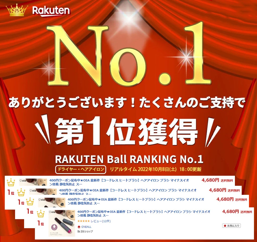 発売以来大好評★4.94高評価!!“今使いたい”を叶える充電式ブラシアイロン 軽量なので、持ち運びも可能