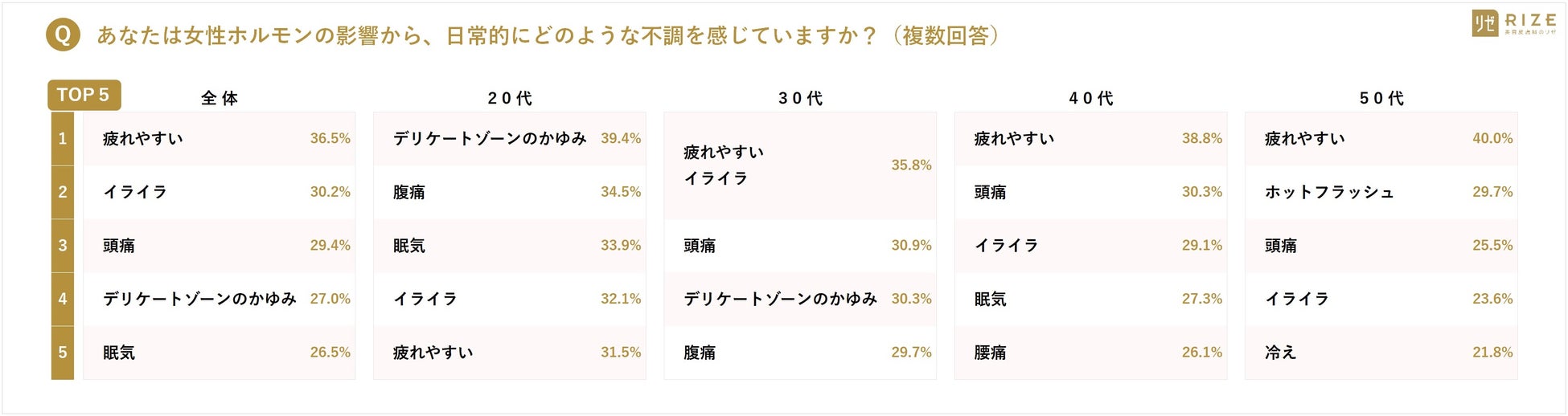 ■質問/あなたは女性ホルモンの影響から、日常的にどのような不調を感じていますか?(複数回答)