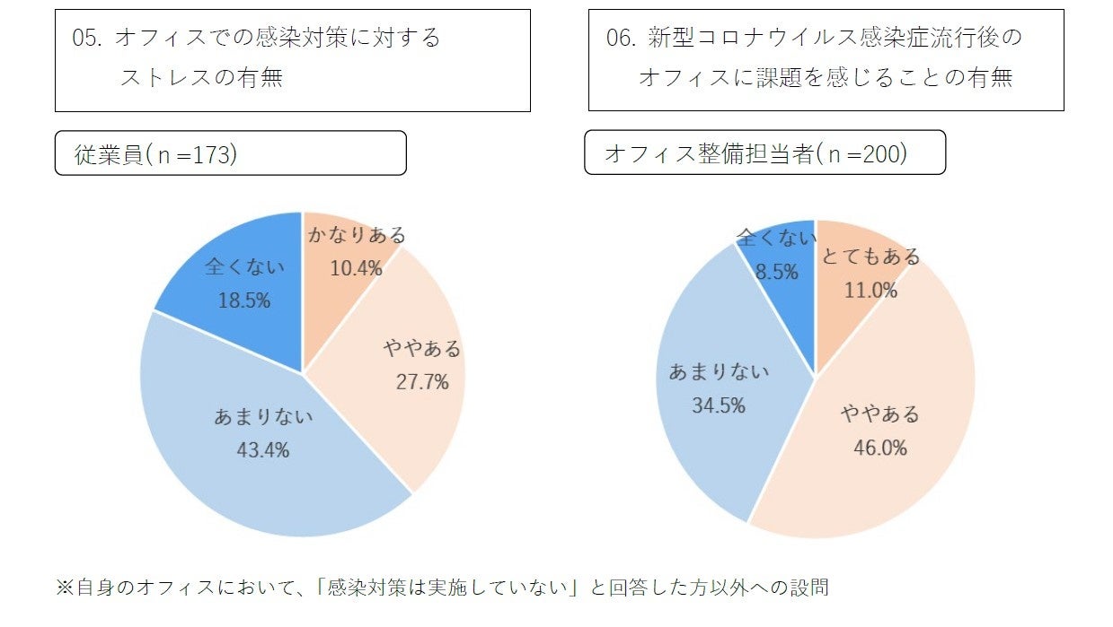 - 一方、オフィス整備担当者は、「感染対策の手間が増えた」37.7%「有効に使えるスペースが少なくなった」31.6%と時間とスペースの圧迫を感じている。