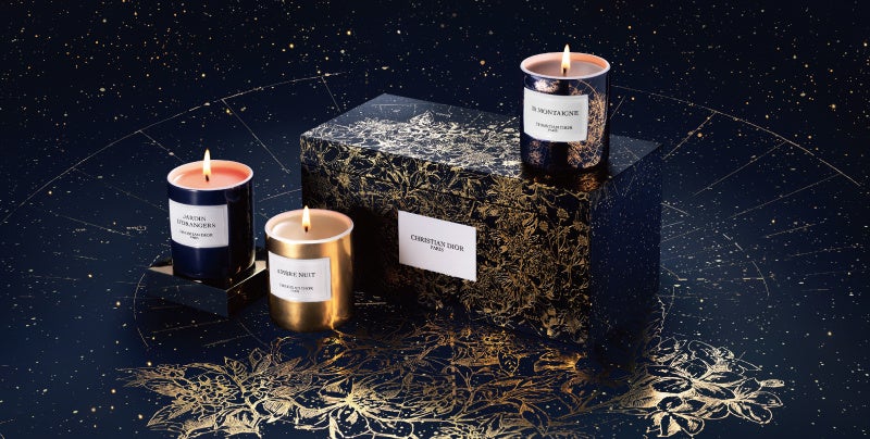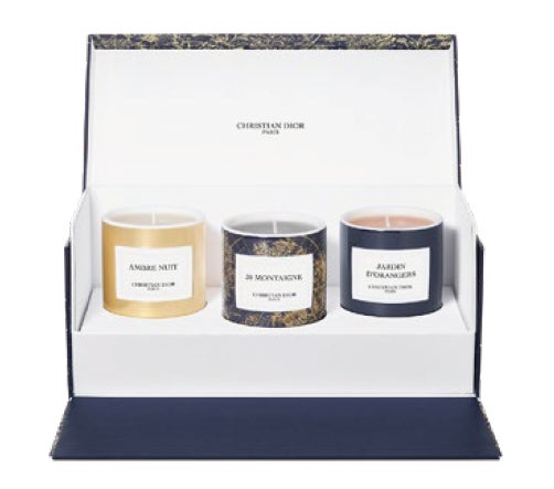 最初にご紹介するのは、メゾン クリスチャン ディオールを象徴するアンブル ニュイ、30 モンテーニュ、ジャルダン ド オランジェの繊細に香り立つ3種のキャンドルが収められたホリデー限定デザインの「メゾン クリスチャン ディオール ミニチュアキャンドル コレクション」。記憶と感情を呼び覚ますように、それぞれの香りが調和しあうことで生まれるユニークな空間をお楽しみ下さい。