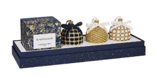 最初にご紹介するのは、メゾン クリスチャン ディオールを象徴するアンブル ニュイ、30 モンテーニュ、ジャルダン ド オランジェの繊細に香り立つ3種のキャンドルが収められたホリデー限定デザインの「メゾン クリスチャン ディオール ミニチュアキャンドル コレクション」。記憶と感情を呼び覚ますように、それぞれの香りが調和しあうことで生まれるユニークな空間をお楽しみ下さい。