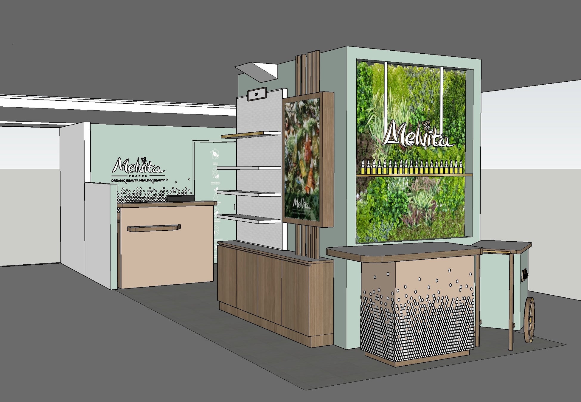 最新のコンセプトを採用した西武池袋本店では、アルガンオイルをフォーカスしたグリーンウォールがお出迎えいたします。