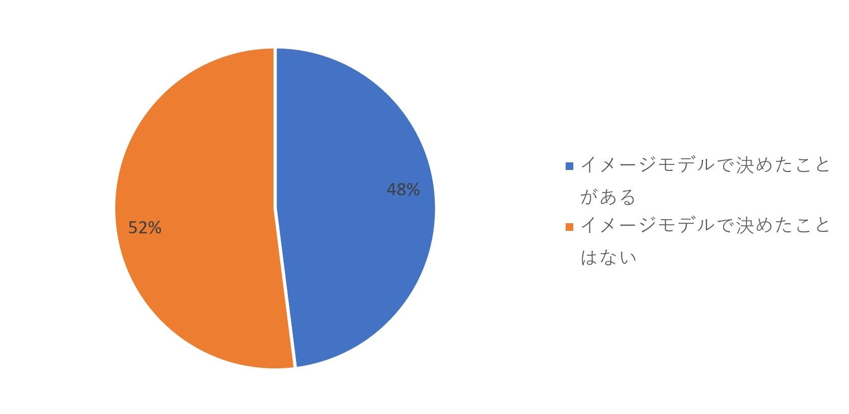 今回「購入するカラコンをイメージモデルで決めたことはありますか?」という質問について、回答者の5割近くが「ある」と回答しました。
