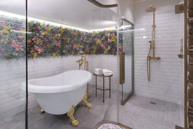 クラシックなデザインのバスタブでの入浴に始まり、ホリデー限定の「ボディスクラブ ブラッシュ・グルマン」で全身の角質ケアを。その後、ボディラップで身体の芯までしっかりとあたため、なめらかでくすみのない、透明感あふれる肌へと導きます。