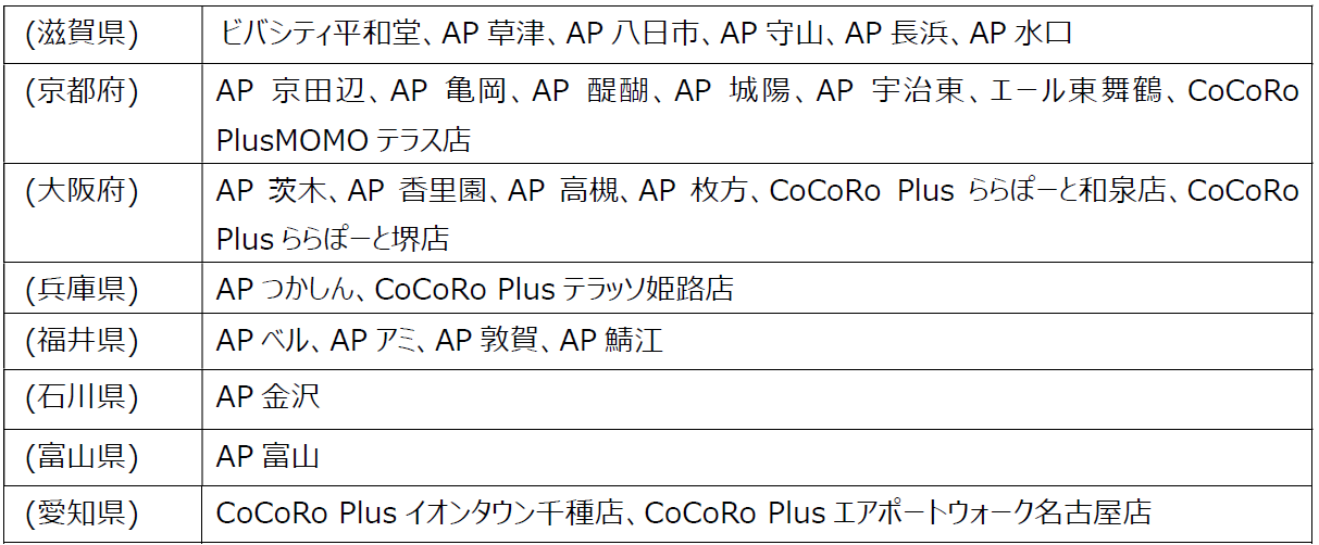 ※CoCoRo Plusの表記のない店舗は、平和堂グループが運営するSC内の店舗です