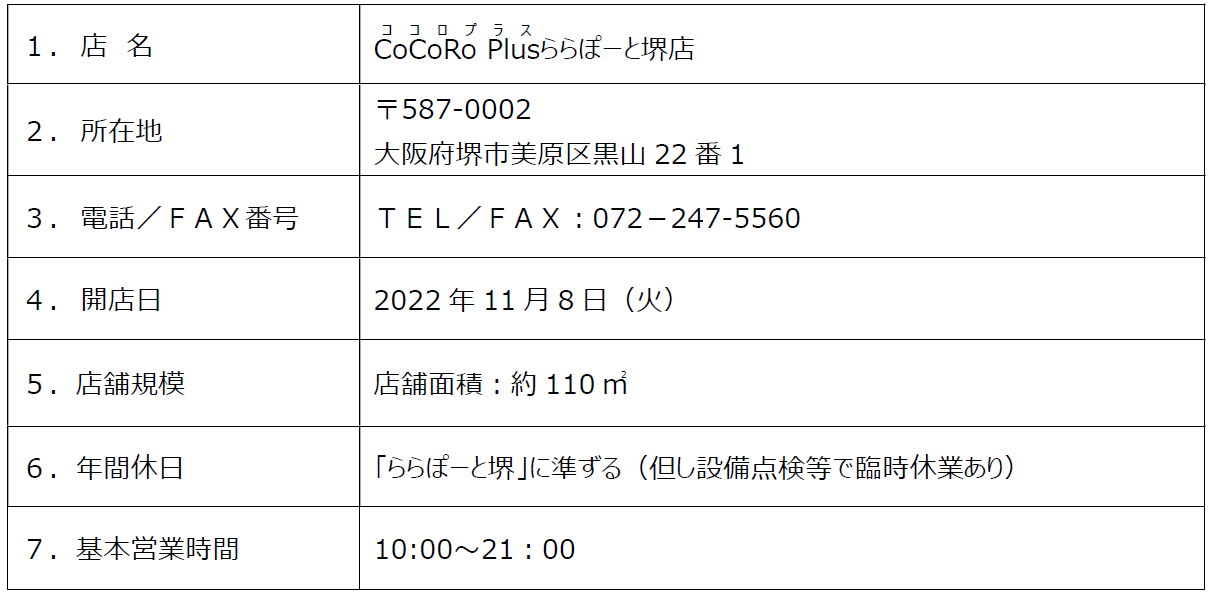 【「CoCoRo Plus ららぽーと堺店」概要】