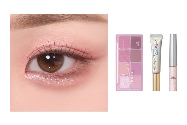 グリッターを涙袋にのせることで、瞳に光が差し込んでいるかのような肌の透明感を引き出す儚げメイクが完成