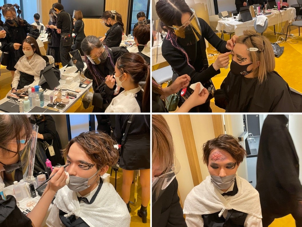 イベント当日は、日常の授業で学んだことを活かして、プロ顔負けのハロウィンメイク・テクニックを披露。会場のスタッフの方々にも大変喜んでいただけ、裏方としてイベントを盛り上げることができました。今後も産学連携の取り組みを通して、将来即戦力として活躍することを目指します。