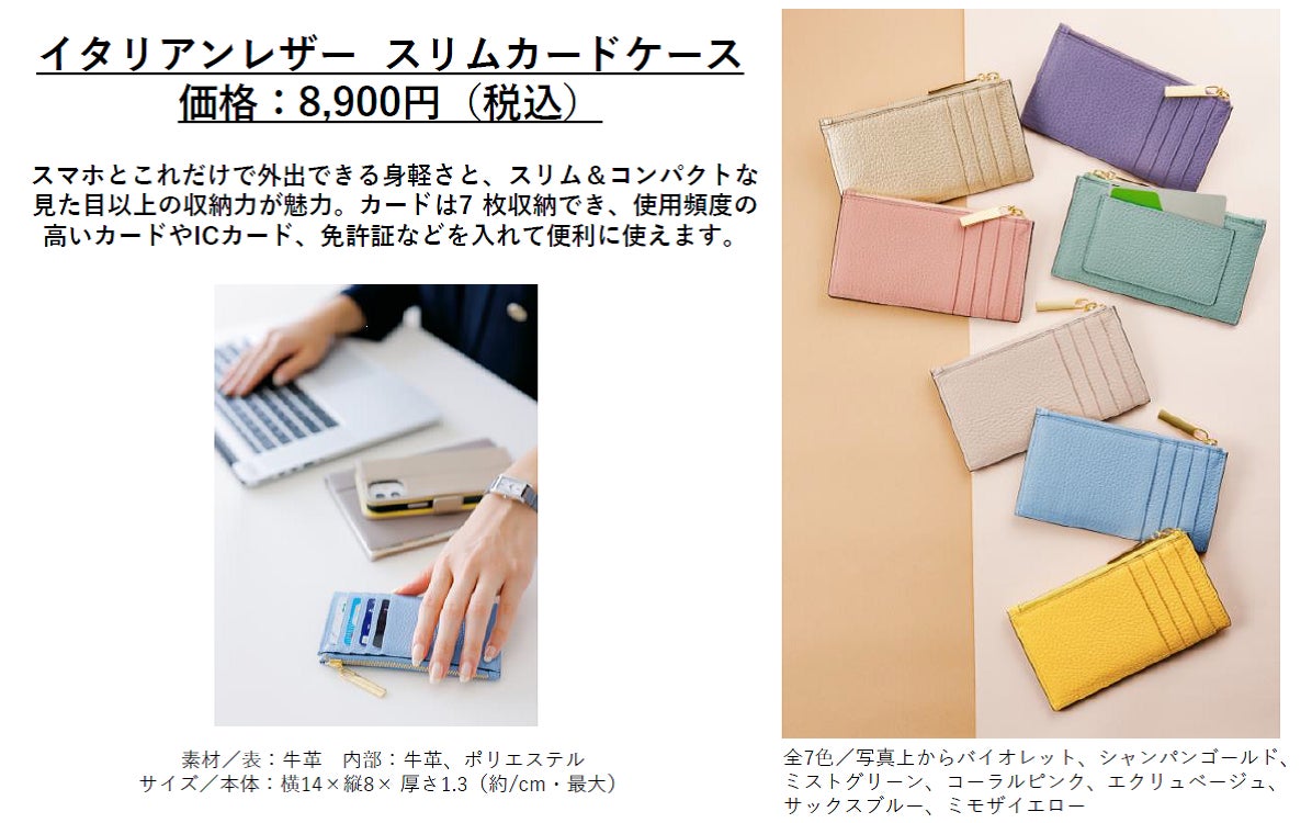 どちらも『イタリアンレザー財布』と同じ最新のイタリアンカラー全7色展開で大人の手肌を美しく演出します。