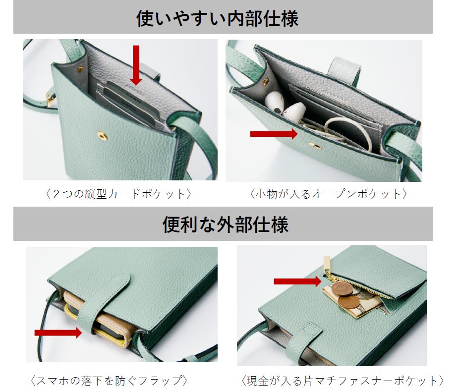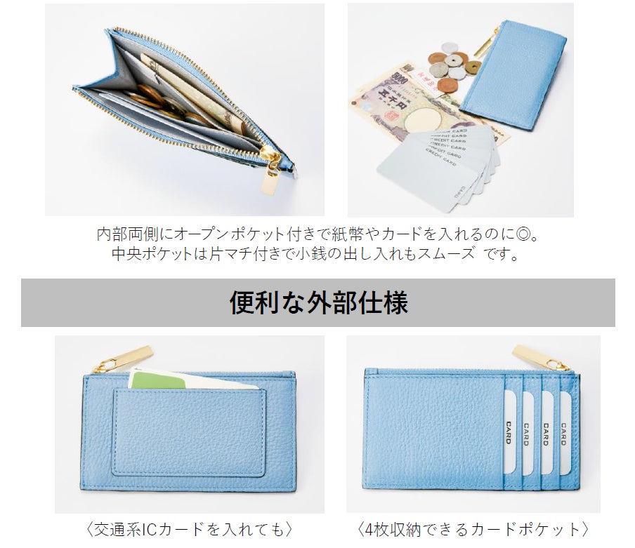 身軽にスマホとカード、現金、小物を持ち歩けて、おしゃれも決まる『スマホポシェット』とカードと現金をバランスよく収納できる『スリムカードケース』。