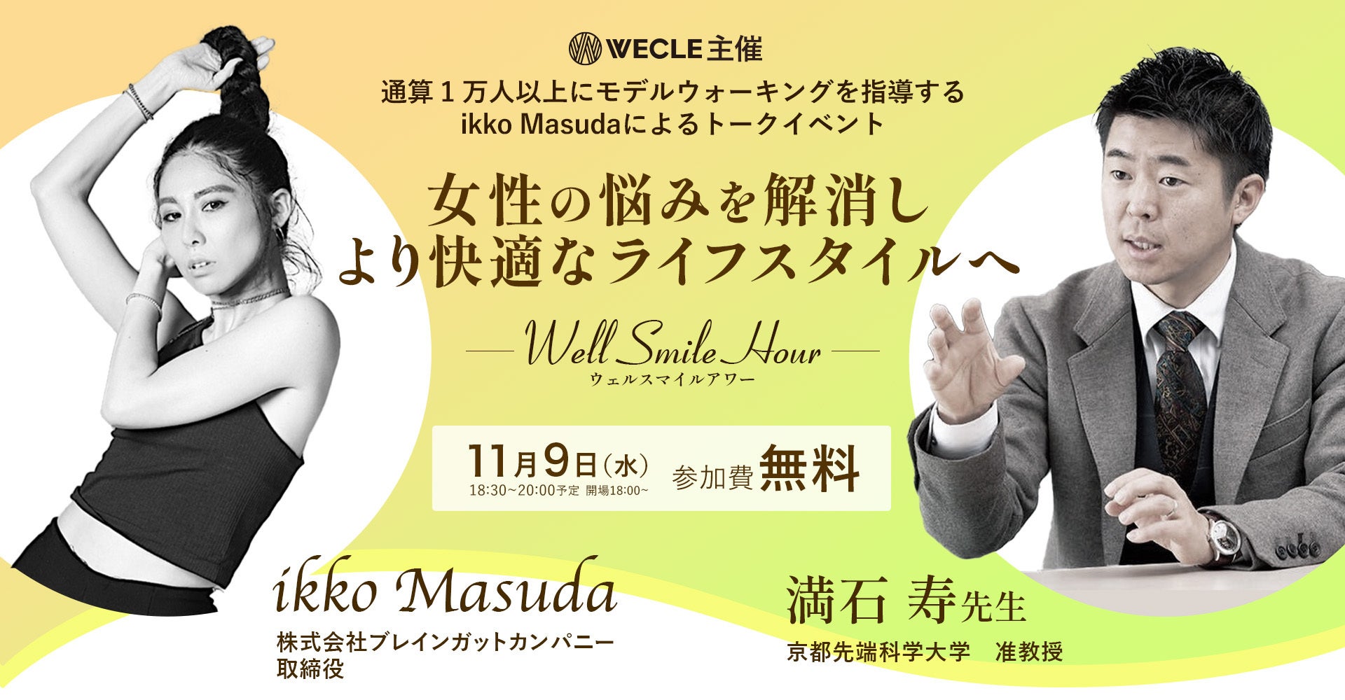 通算1万人以上にモデルウォーキングを指導するikko Masudaさんが登壇、”身近な女性特有の悩み”をテーマにしたトークイベント「WECLE主催 Well Smile Hour」を開催!