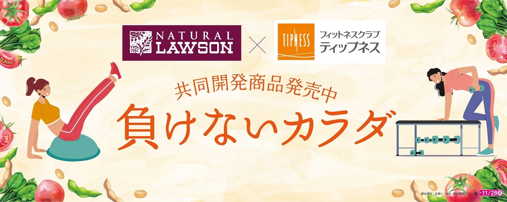関東・関西・東海地区を中心に総合フィットネスクラブおよび24時間トレーニングジムを展開する株式会社ティップネス(本部:東京都千代田区、代表取締役社長:酒巻 和也)は、株式会社ローソン(本社:東京都品川区、代表取締役 社長:竹増 貞信、以下「ローソン」)と共同で、チルド弁当・おにぎり・スープなど、“健康維持”をテーマにした6つの商品を開発しました。11月1日(火)より、ローソンが展開するナチュラルローソン店舗にて『負けないカラダフェア』として販売を開始し、あわせてWEB上では購入者へ健康なカラダづくりの提案をおこないます。
