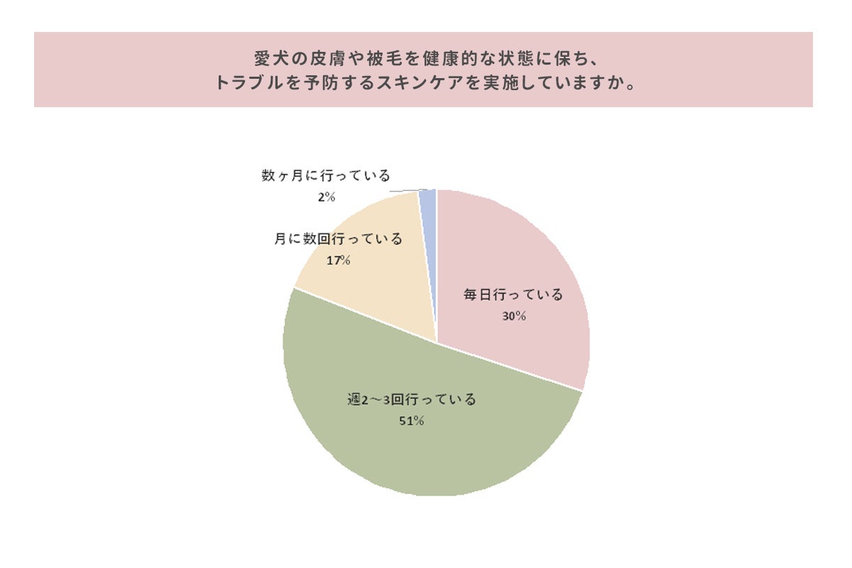 - Q1.愛犬の皮膚や被毛を健康的な状態に保ち、トラブルを予防するスキンケアを実施していますか。(ブラッシング、適度なシャンプー、爪切りや耳掃除、保湿ケア、肉球ケア)