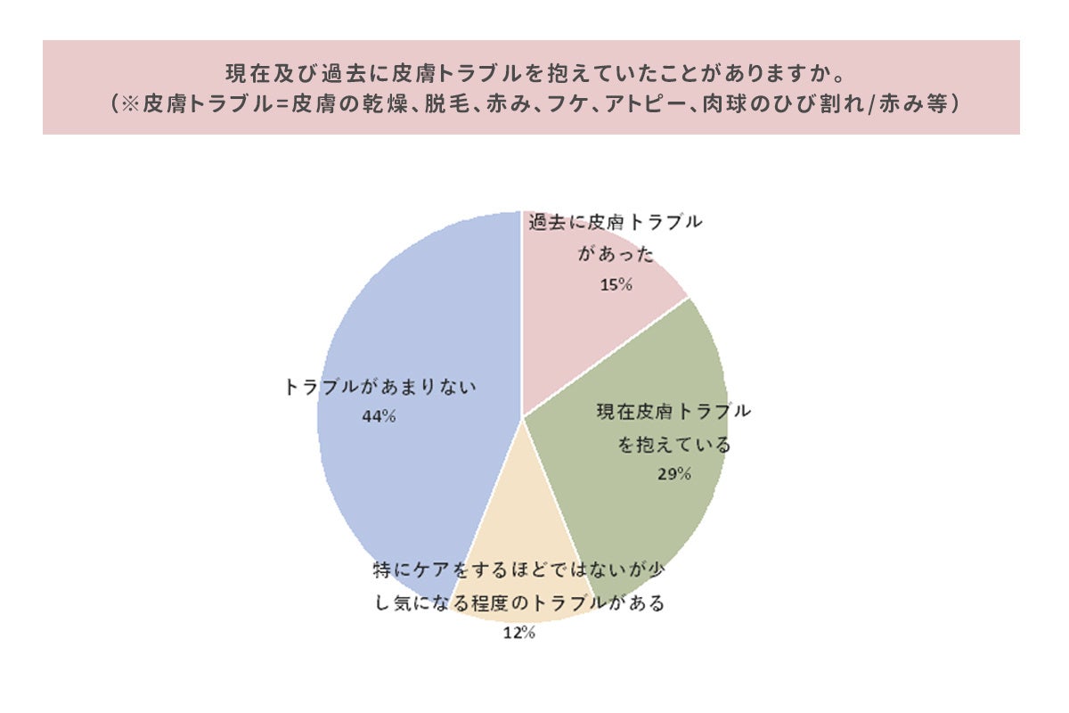 - Q4.現在及び過去に皮膚トラブルを抱えていたことがありますか。(※皮膚トラブル=皮膚の乾燥、脱毛、赤み、フケ、アトピー、肉球のひび割れ/赤み等)