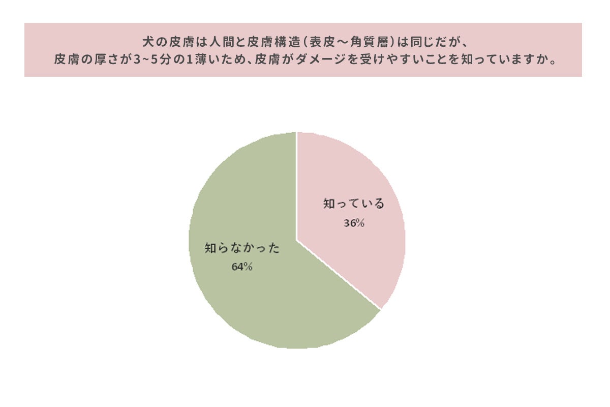 - Q5. 犬の皮膚は人間と皮膚構造(表皮〜角質層)は同じですが、皮膚の厚さが3~5分の1薄いため、皮膚がダメージを受けやすいことを知っていますか。