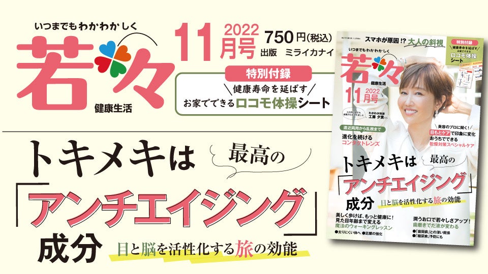 株式会社わかさ生活(本社:京都市下京区)は、健康雑誌『若々(わかわか)』2022年11月号を2022年11月1日(火)に株式会社ミライカナイ(本社:東京都中央区)から発売いたします。