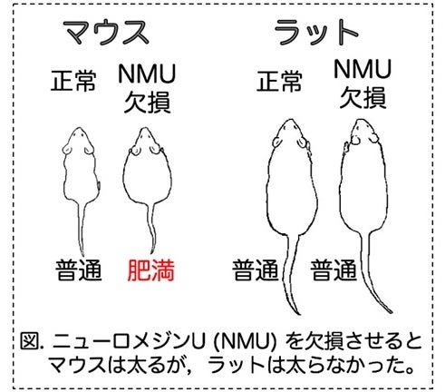 - ニューロメジンU欠損マウスとは異なり,ニューロメジンU欠損ラットは摂食量が増加せず、肥満にもなりませんでした。