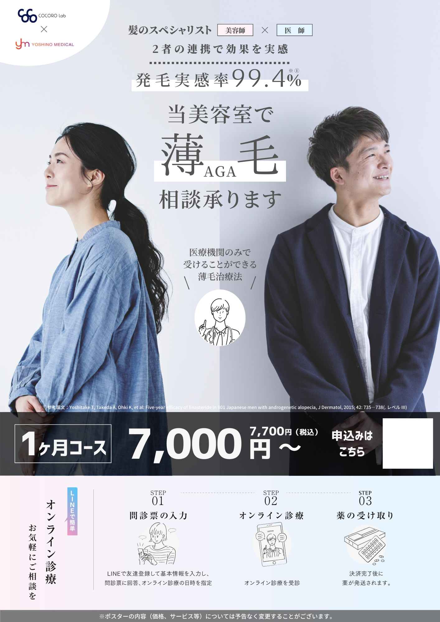 日本で初めて美容室を相談窓口としたクリニックでのAGA治療サービスを展開している株式会社YOSHINO MEDICAL及び株式会社COCORO Labがサービスの提供を全国に拡大している。