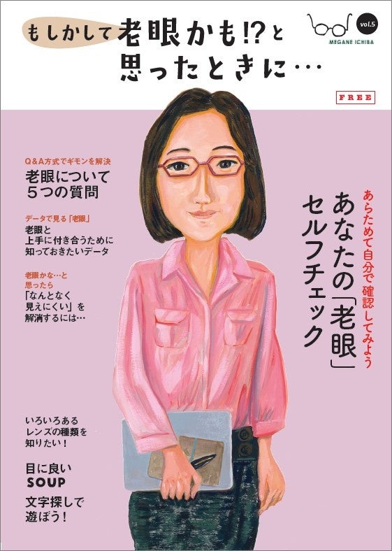 第5弾となる今回は、老眼と上手に付き合うために知っておきたい老眼セルフチェックや、老眼にまつわるQ&A、正しい老眼鏡の選び方など、「老眼かも?」と思った時に役立つ情報を掲載した『もしかして老眼かも⁉と思ったときに…』を2022年10月31日(月)より全国の「眼鏡市場」店舗にて無料配布いたします。