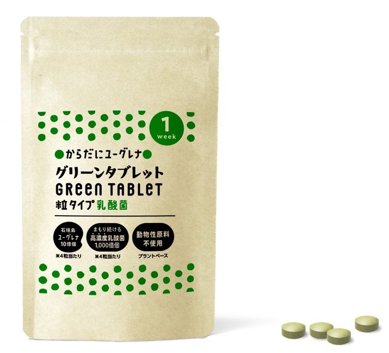 株式会社ユーグレナ(本社:東京都港区、代表取締役社長:出雲充)は、主力食品ブランドである『からだにユーグレナ』から、動物性原料を使っていない「からだにユーグレナ グリーンタブレット乳酸菌 動物性原料不使用」を、公式通販サイト「ユーグレナ・オンライン」(https://online.euglena.jp)、Good Good Mart※1、及びAmazonにて2022年10月31日(月)より数量限定で販売を開始します。