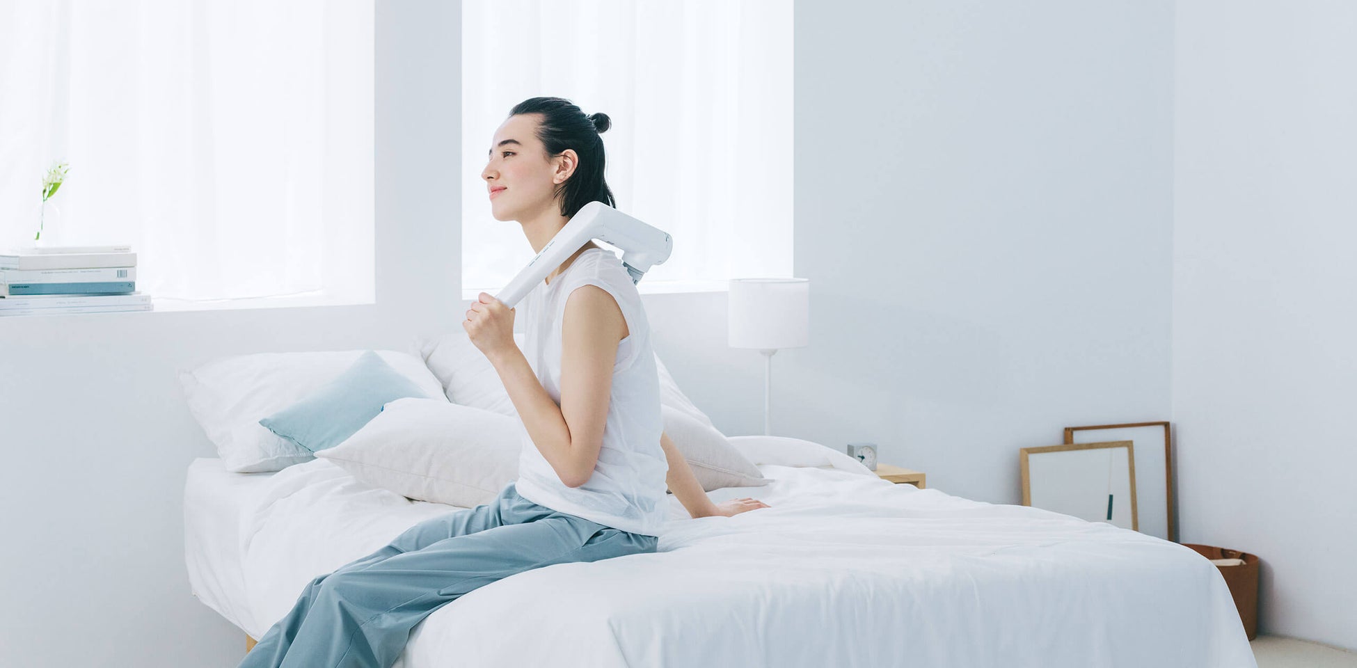 コードレスなので、家じゅう好きな場所へ持ち運んでマッサージ。